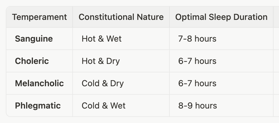 Furthermore, Unani teaches us that the optimal sleep duration depends on your temperament.