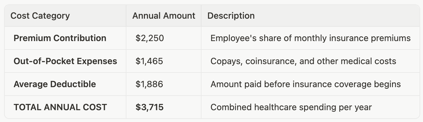 These are median numbers for individuals with single coverage under employer-sponsored insurance. For many Americans, these costs can be substantially higher. Workers at small firms face average deductibles of $2,631, and more than half face deductibles exceeding $2,000 annually.